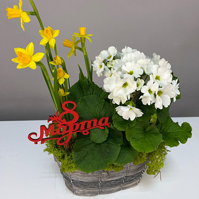 Милая цветочная композиция на 8 марта с весенними цветами. Поздравьте маму, любимую, дочку, бабушку и коллег.