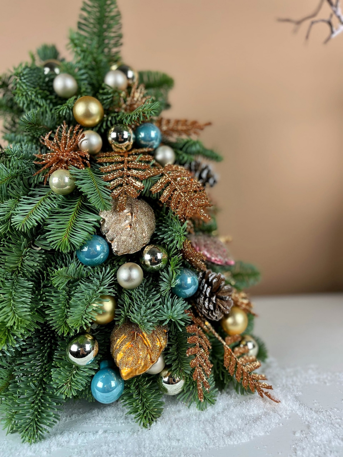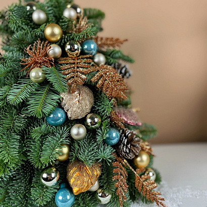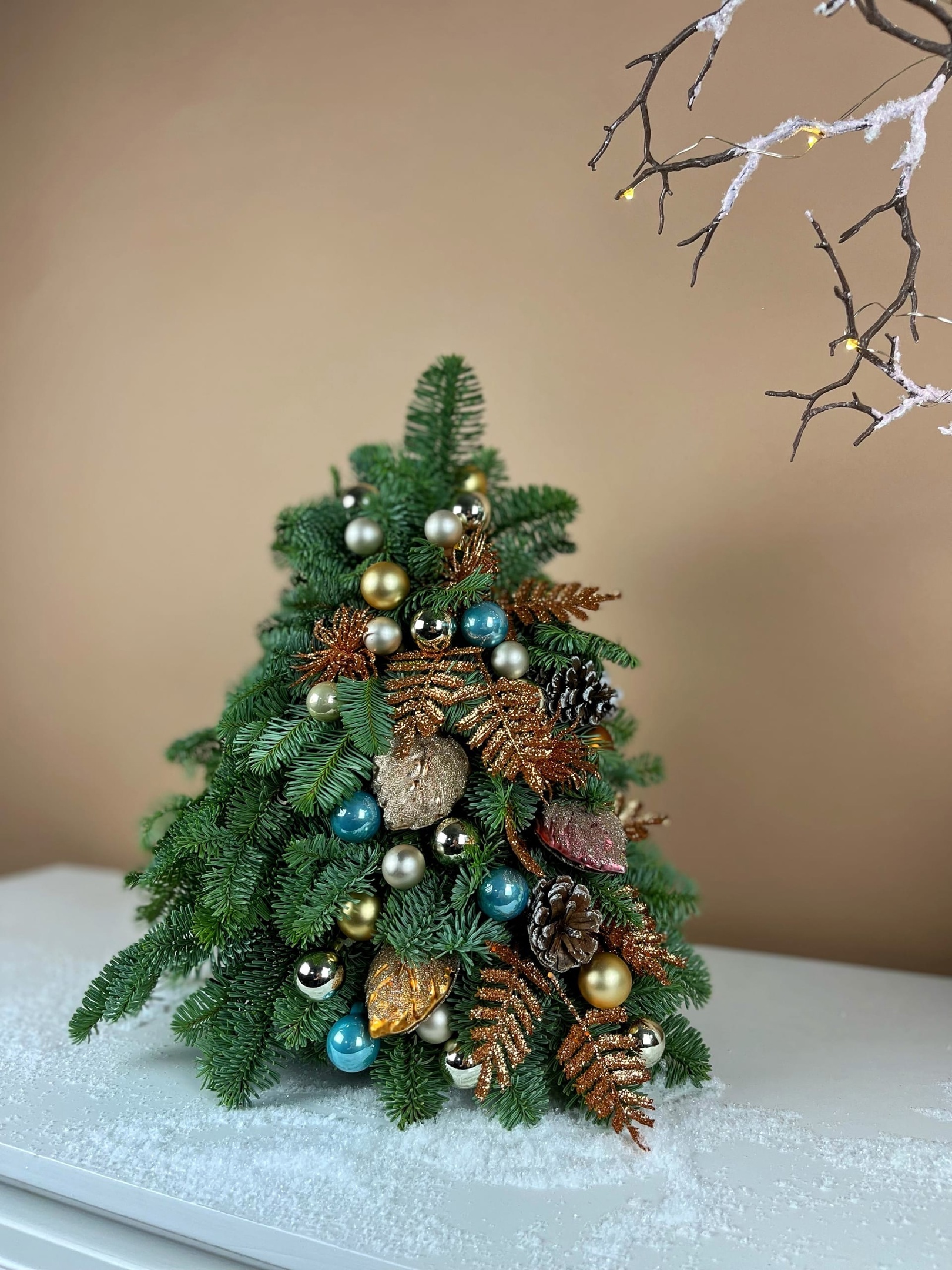 Ёлочка из нобилиса Вечернее сияние выполнена из мягких и пушистых лапок нобилиса, датской Пихты. К тому же не осыпается при высыхании. Такая композиция будет отлично смотреться на рабочем столе, в офисе, на ресепшене, она украсит собой новогодний стол или станет оригинальным подарком. Высота 30 см.