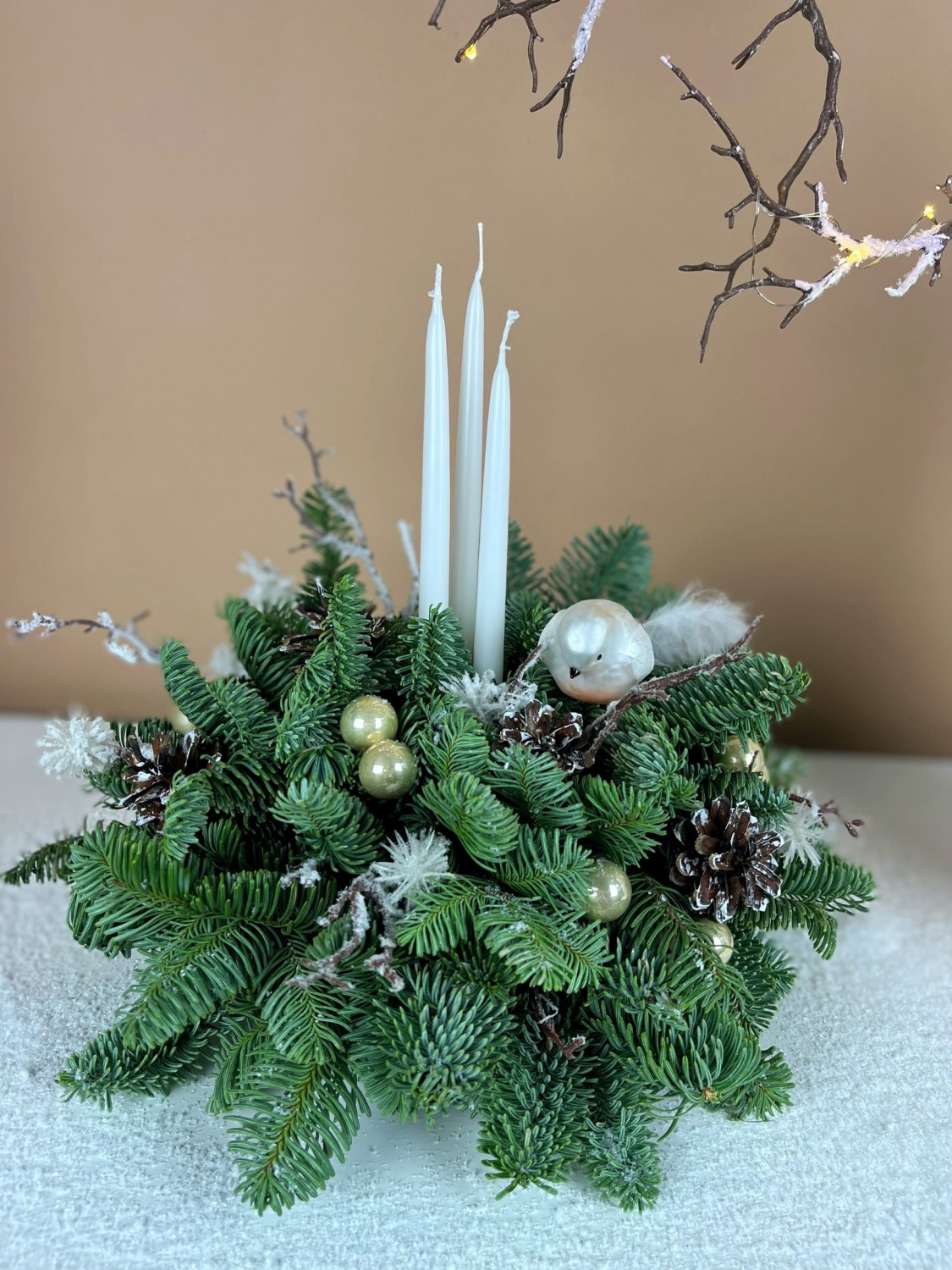 Праздник можно подарить! Елочная композиция Праздничные огоньки со свечами станет украшением праздничного стола или уютным презентом для зимнего тожества.