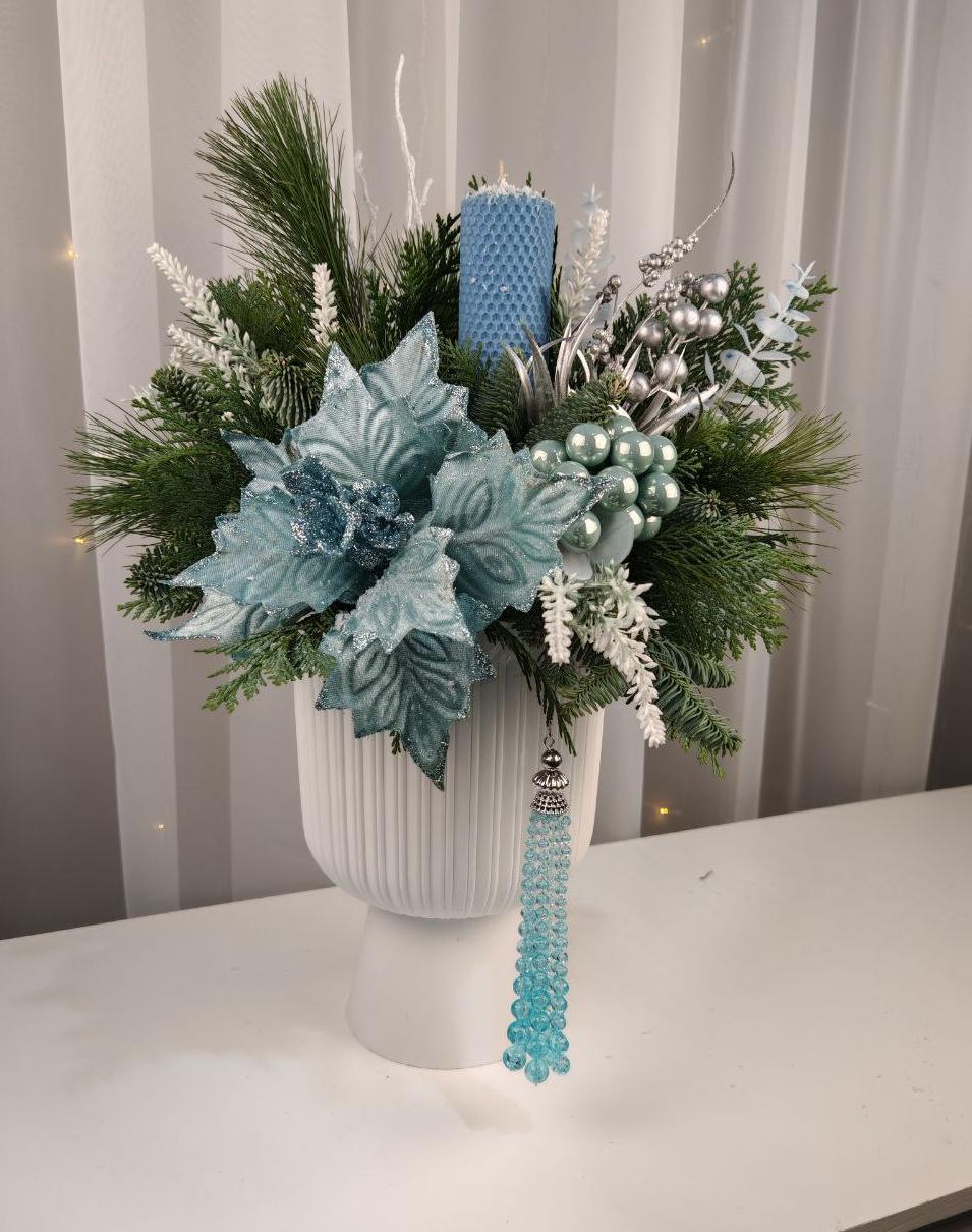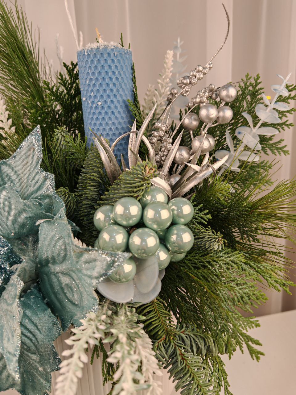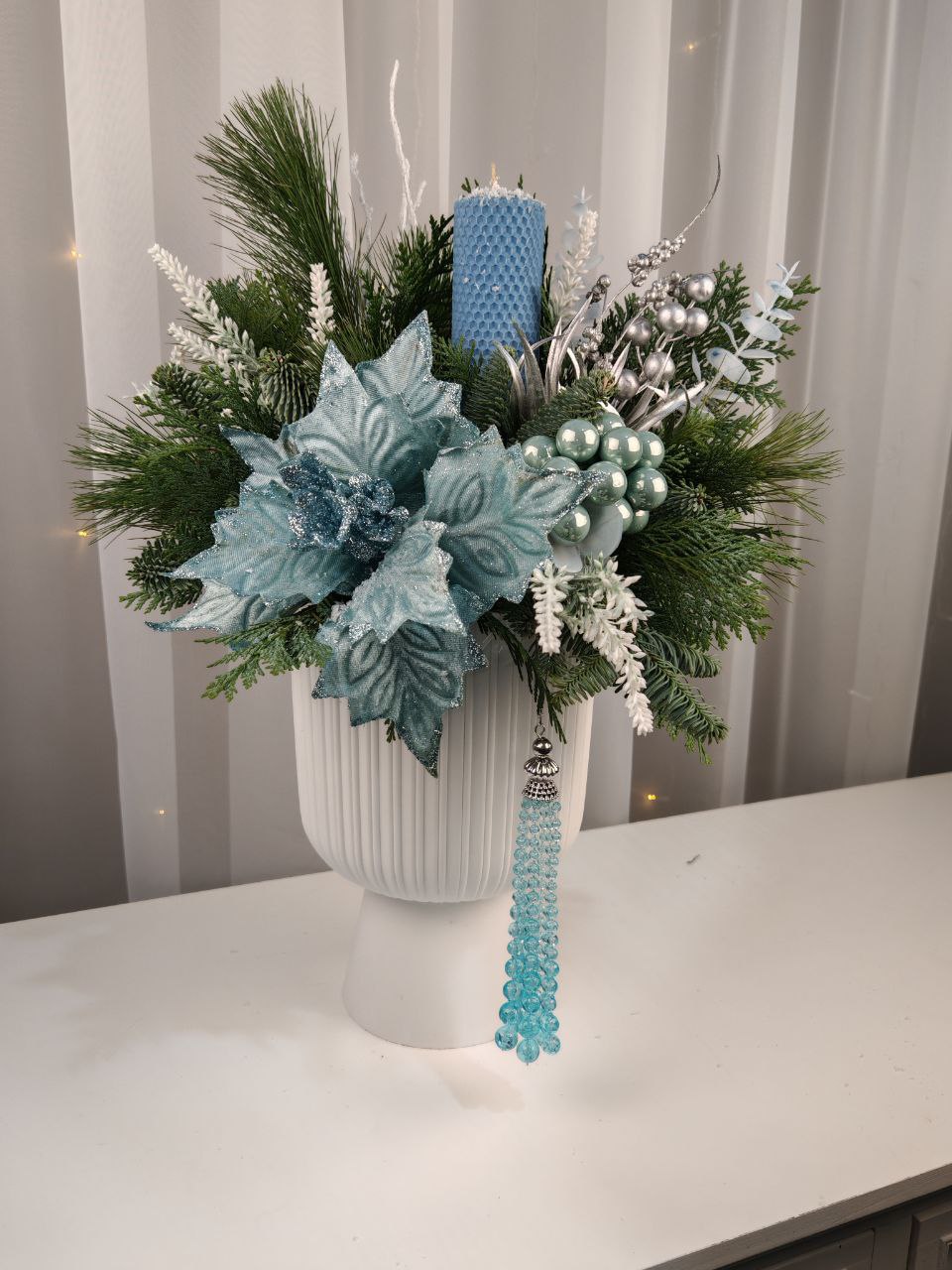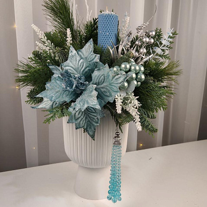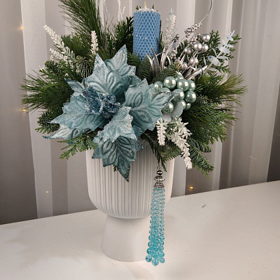 Подарите праздник! Елочная композиция со свечой Волшебный день с ароматными веточками сосны и нобилиса станет украшением праздничного стола или уютным презентом для зимнего тожества.