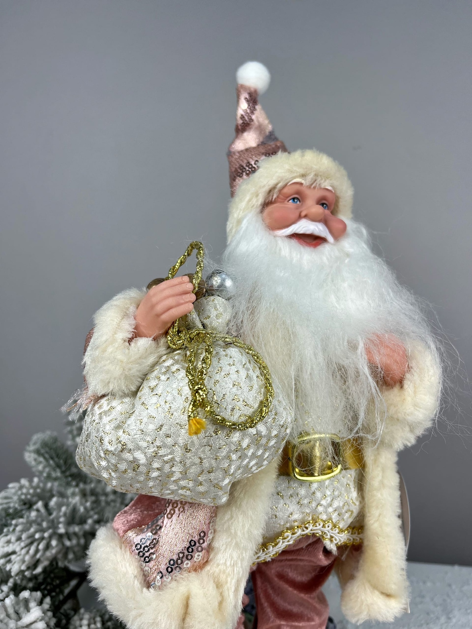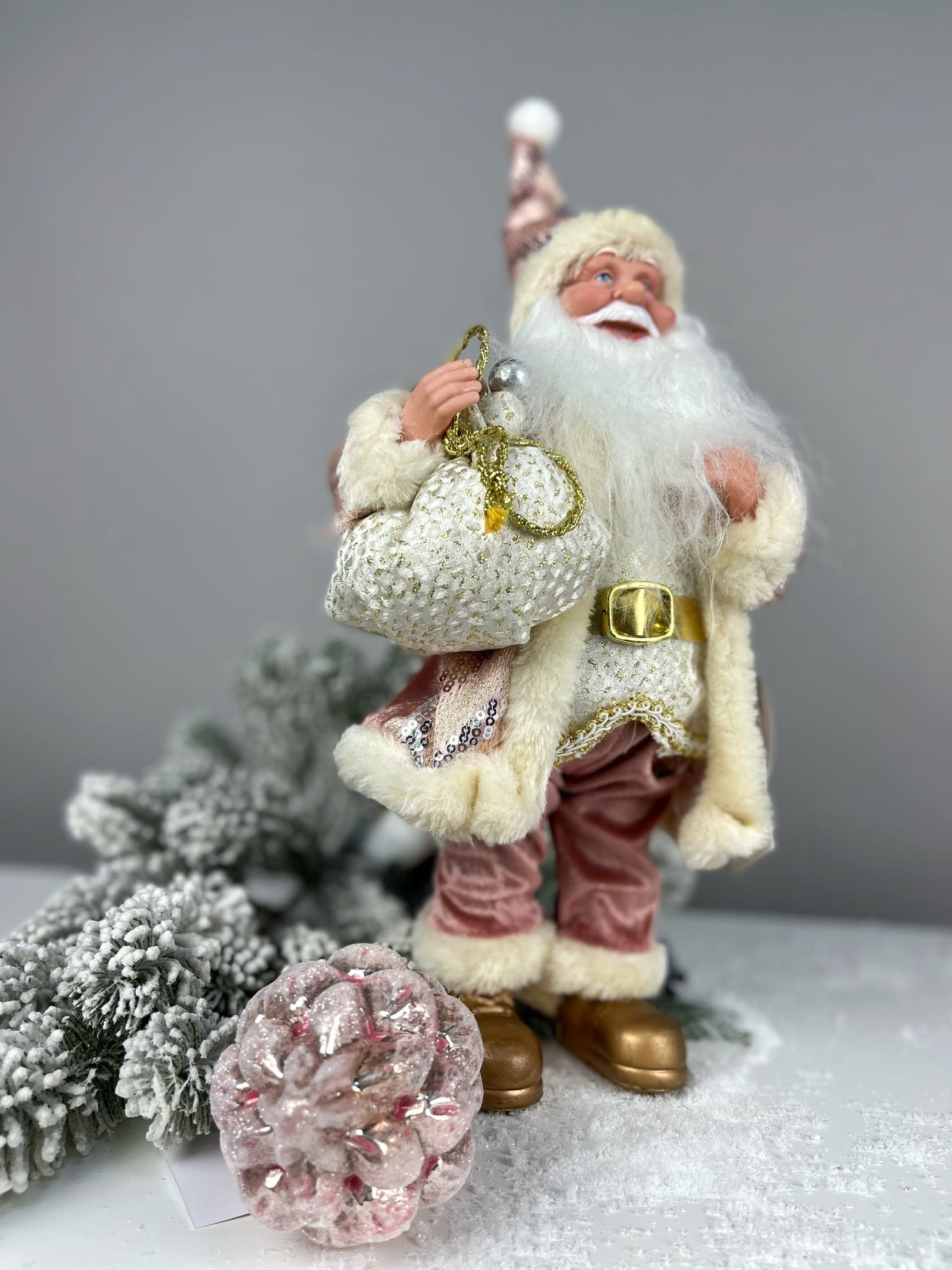 Новогоднее украшение Дед Мороз с мешком подарков дополнит Ваш зимний букет или композицию и доставит радость получателю! Высота 30 см.