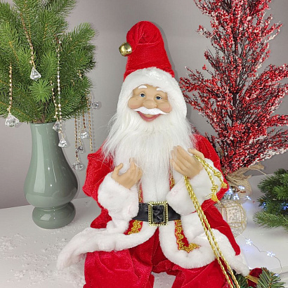 Сидячий классный Дед Мороз 100 см высотой в красном наряде порадует как детей, так и взрослых.