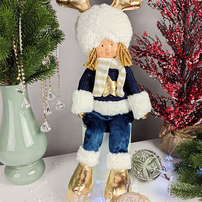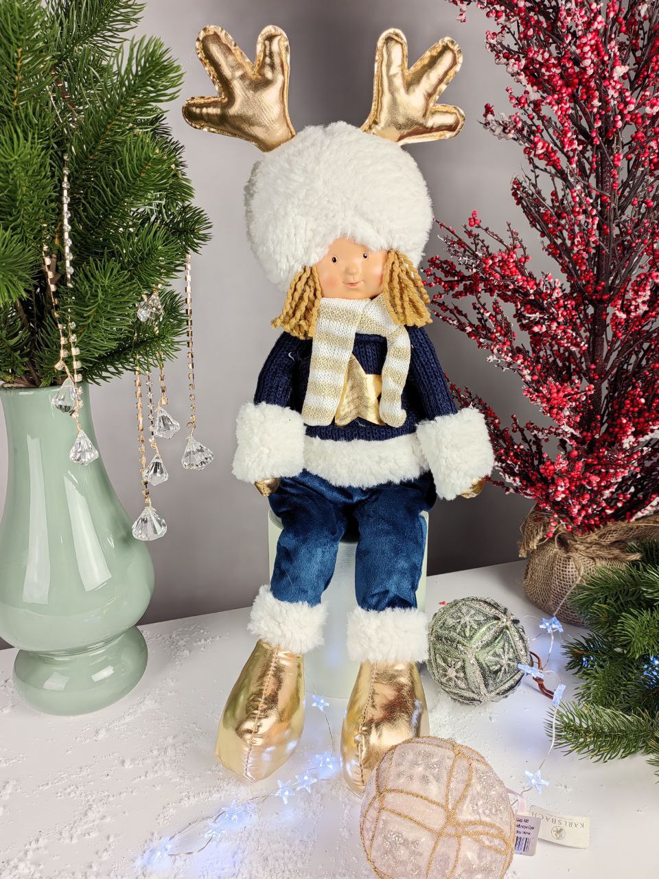 Игрушка Девочка 70 см в модном синем костюме для новогоднего настроения! Закажите милые подарки, сувениры, новогодний декор и зимние букеты с ароматной елкой с доставкой на дом от Амелии.