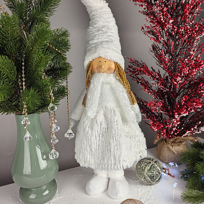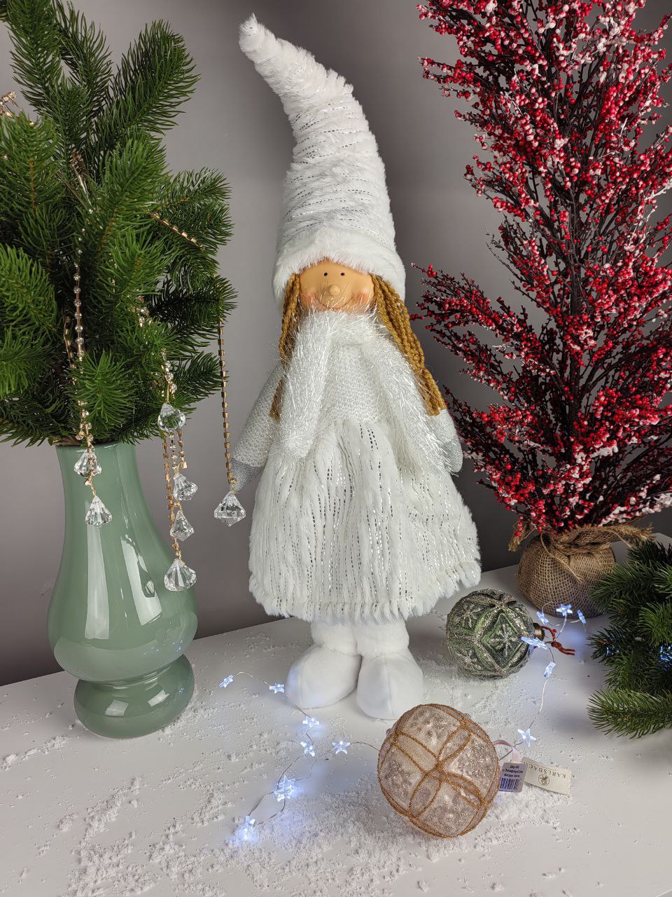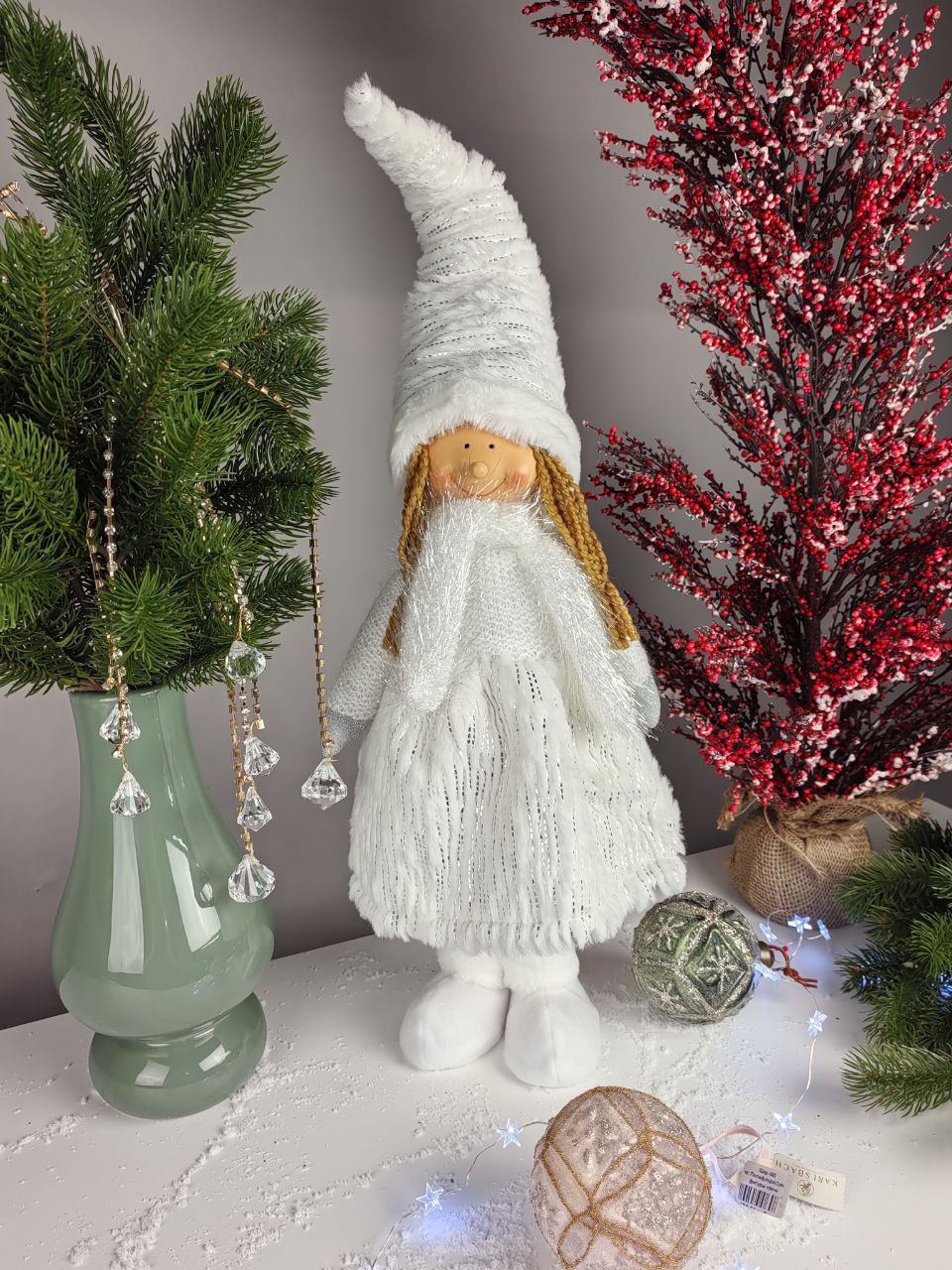 Девочка 55 см в белом наряде словно снежинка. Подарите новогоднее настроение дорогим сердцу людям. Милые подарки, сувениры, новогодний декор и зимние букеты с ароматной елкой с доставкой на дом.