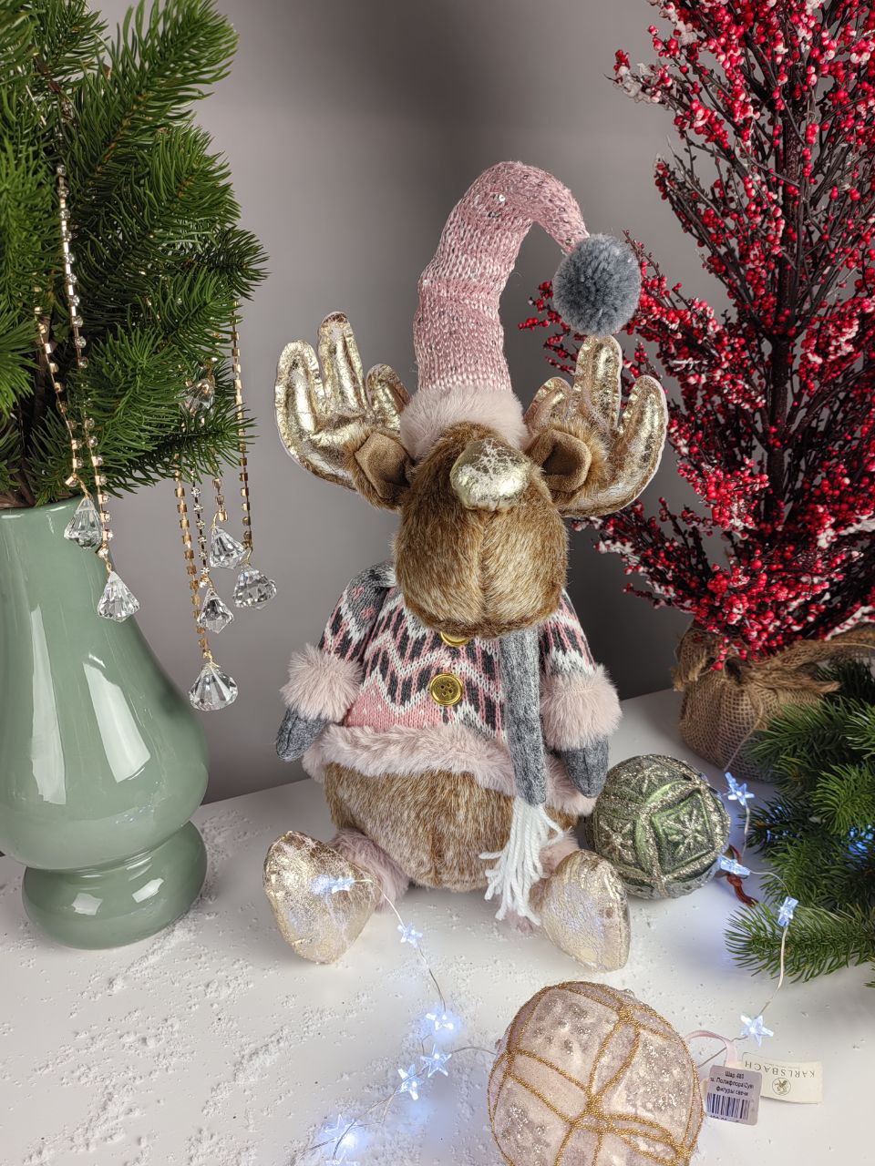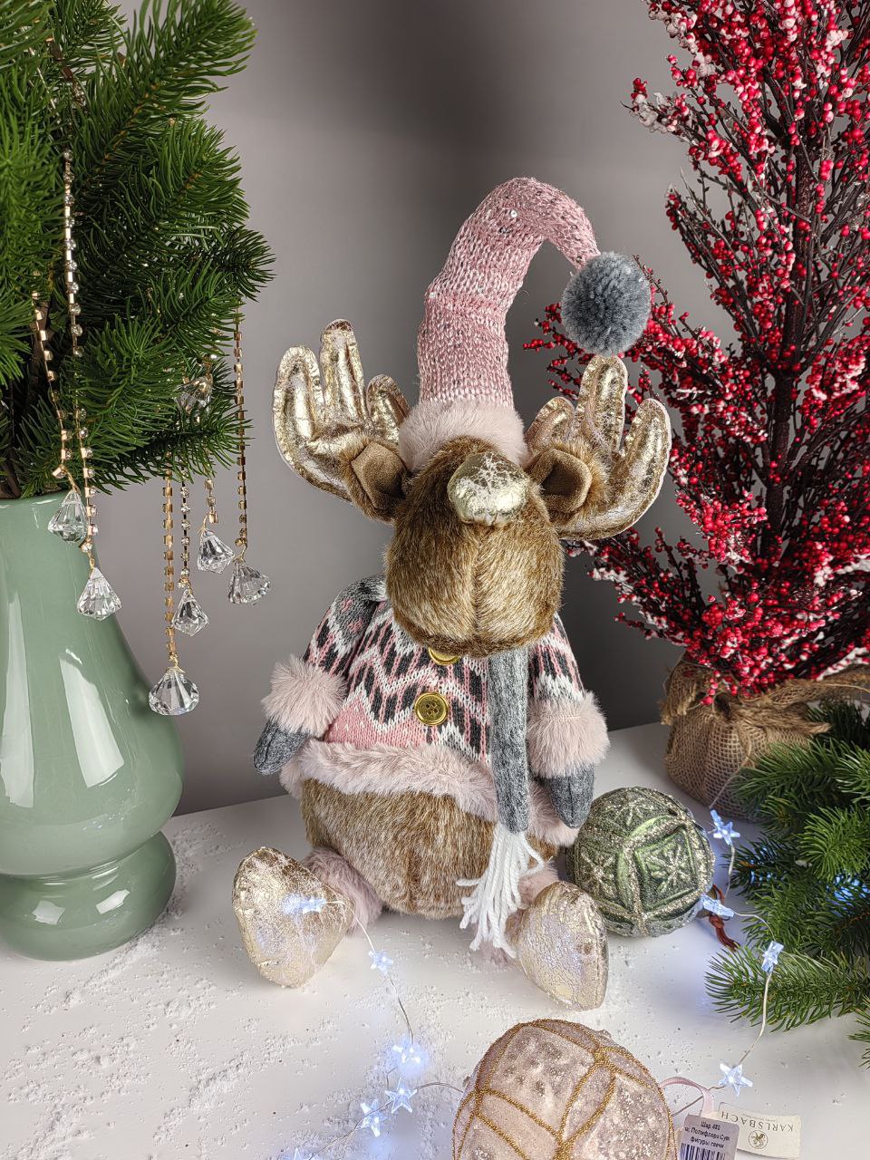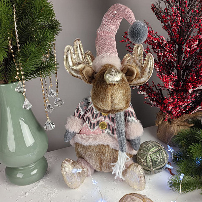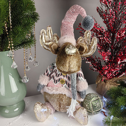 Новогодний Олень в свитере и колпаке для зимнего праздничного настроения! Закажите милые подарки, сувениры, новогодний декор и зимние букеты с ароматной елкой с доставкой на дом от сети салонов Амелия.
