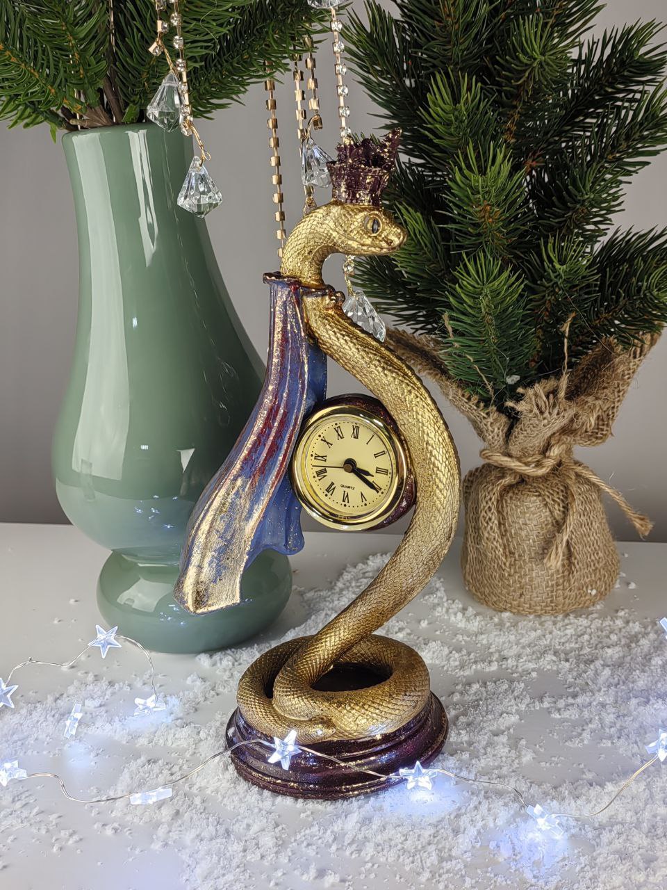 Статуэтка змеи с часами - символ наступающего 2025 года! Доставим новогоднее настроение вашим близким!