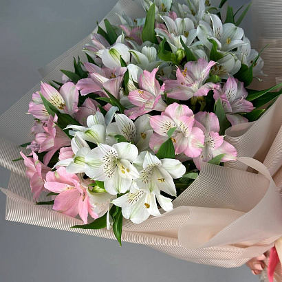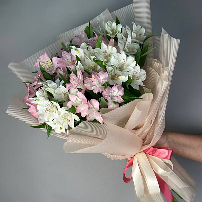 Букет из белой и розовой альстромерии - нежные цветы для весеннего настроения в праздники и будни!
