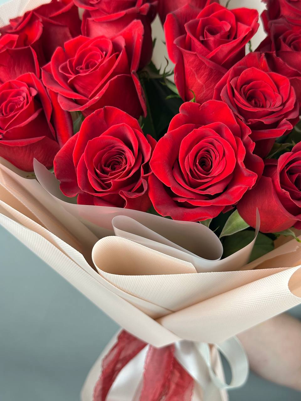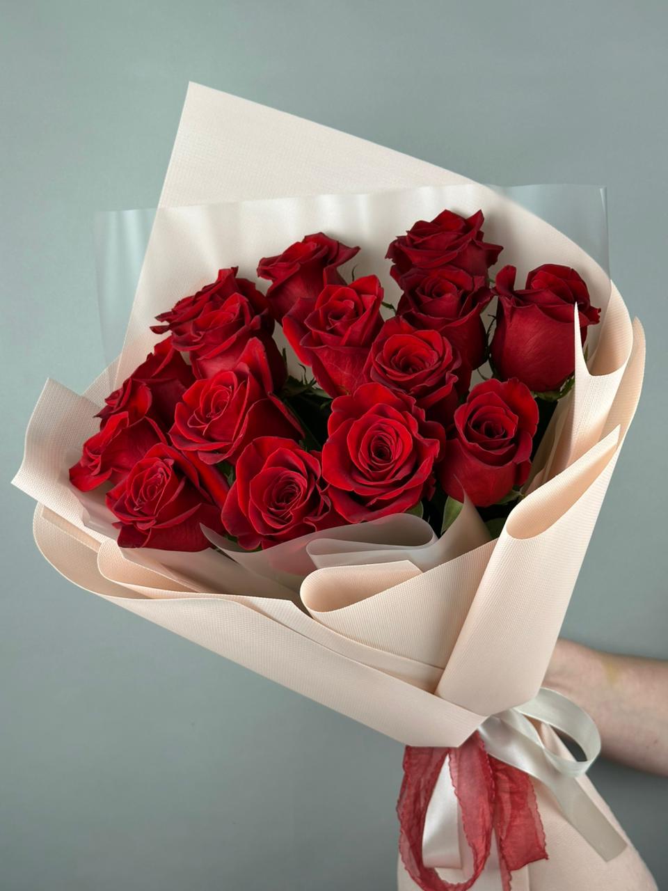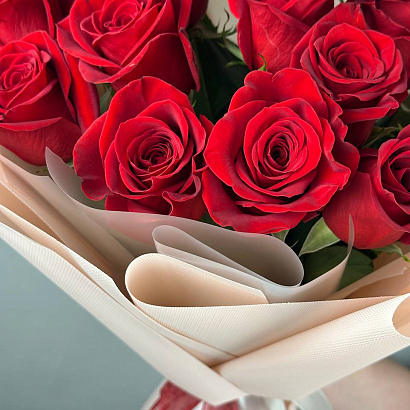15 роз сорта Фридом высотой 70 см оформленных в современную упаковку. Классическое сочетание красных роз и сдержанной упаковки лучший вариант, чтобы напомнить о своих чувствах или признаться в них.