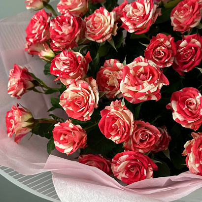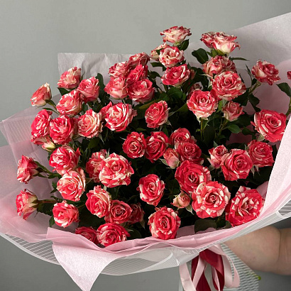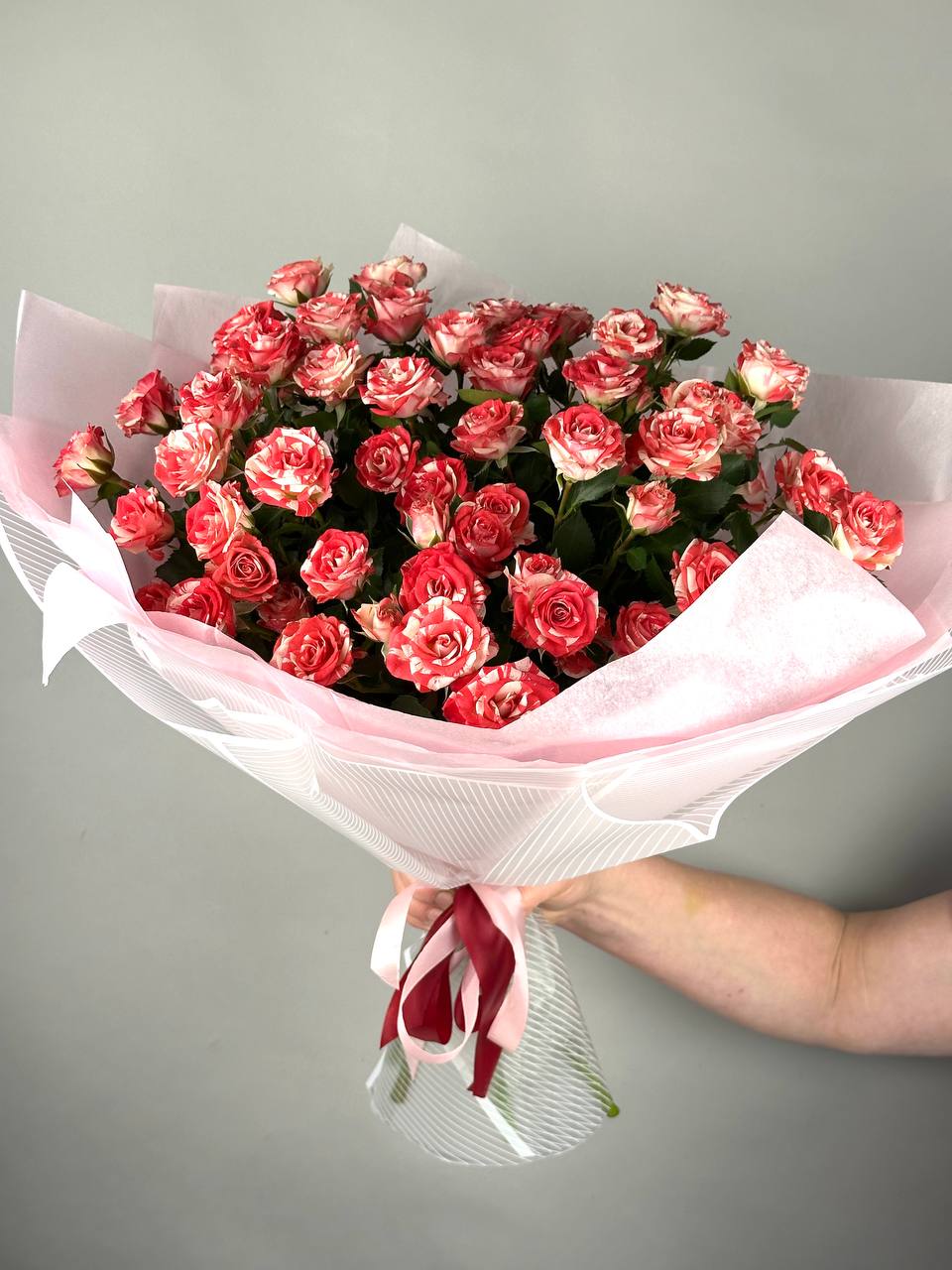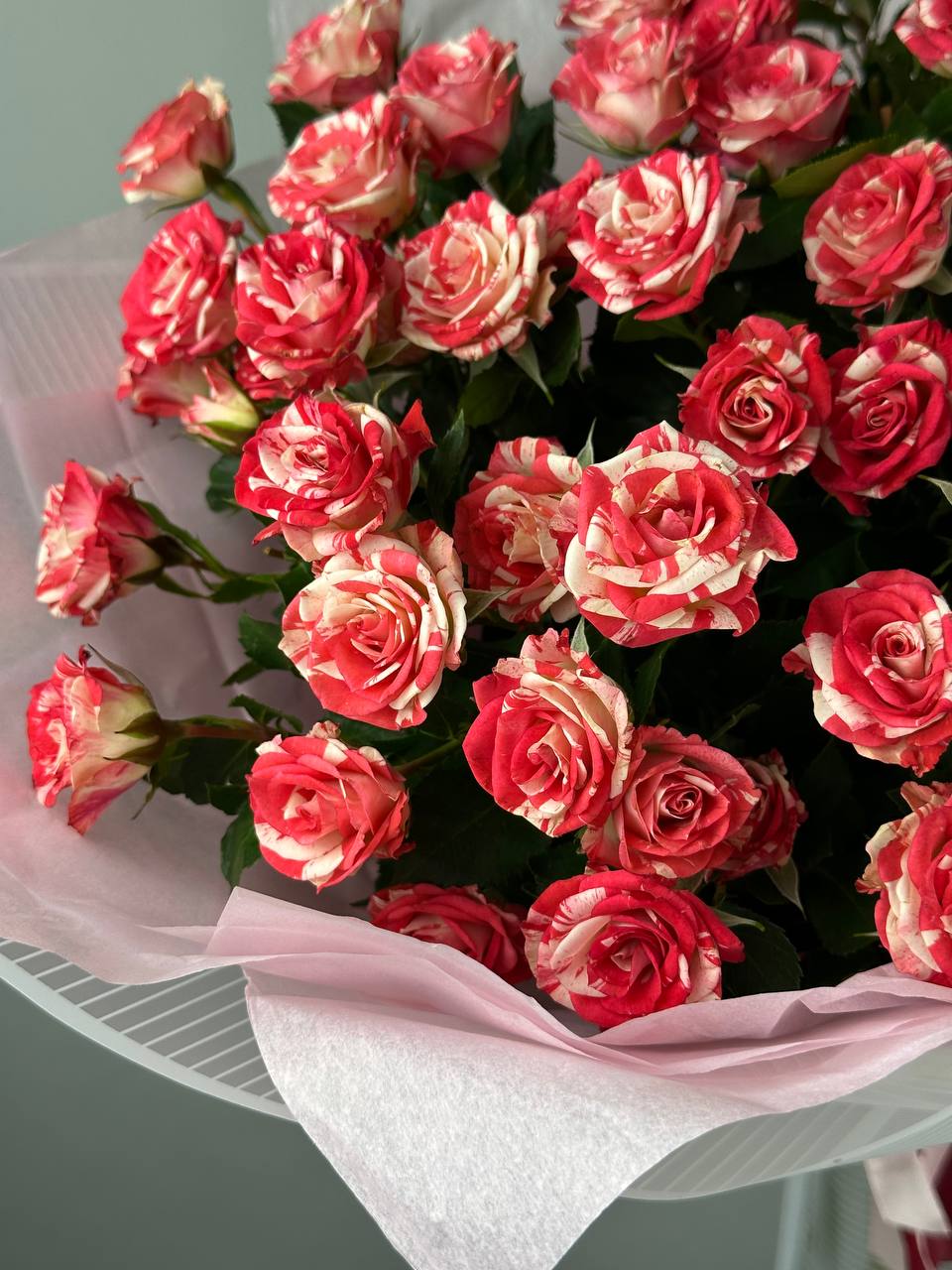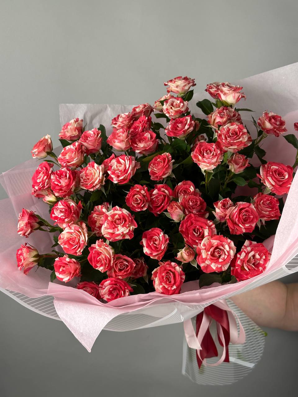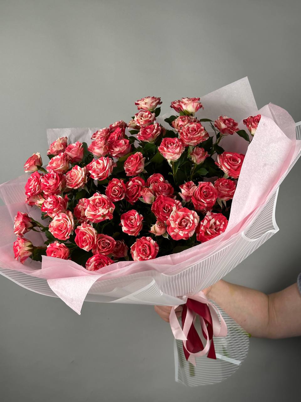 Нежный и пышный букет кустовых роз сорта Файерфокс. Подарите улыбку любимым!