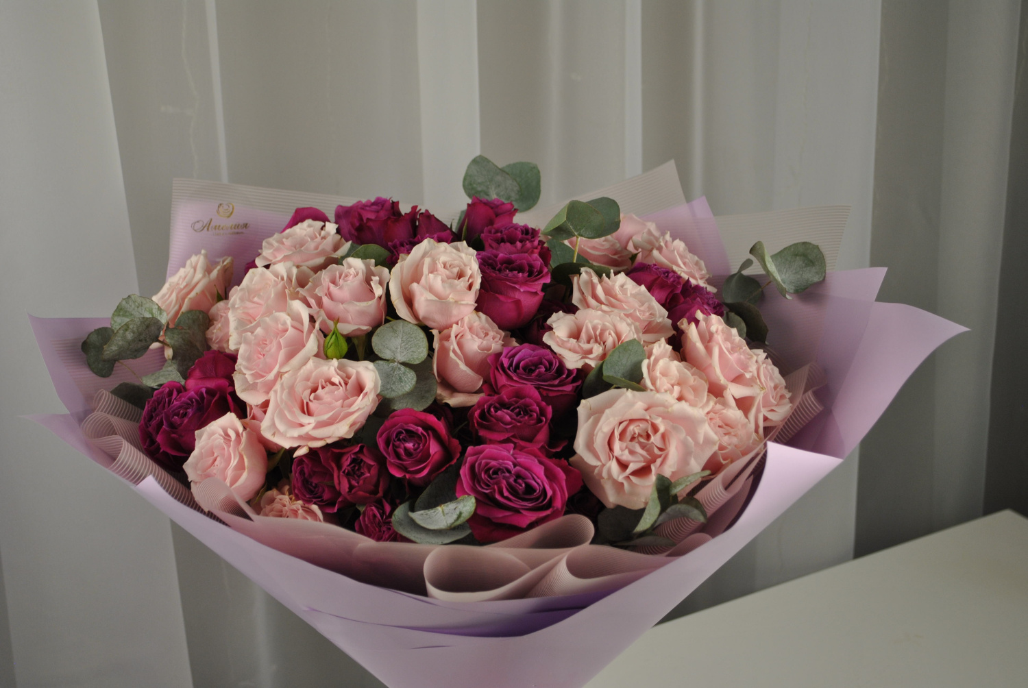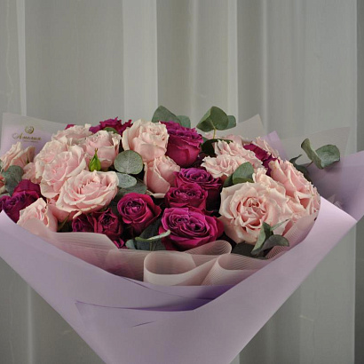 Возможна замена составляющих букета в связи с сезонностью, а также упаковки на аналогичную с сохранением цветовой гаммы и стоимости букета или композиции.