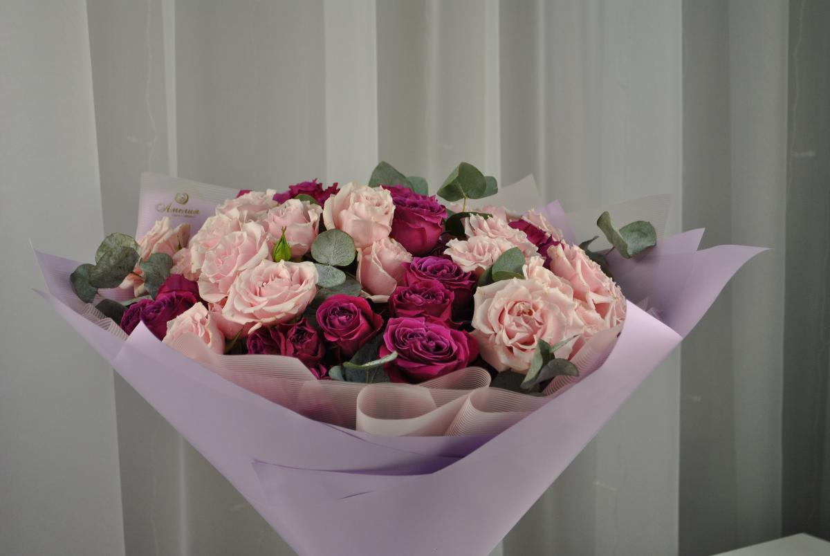 Восхитительный букет из роз сорта Майолика двух роскошных "вкусных" оттенков. Ценительницы роз оценят по достоинству такой шикарный презент.