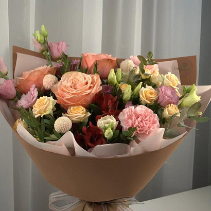 Возможна замена составляющих букета в связи с сезонностью, а также упаковки на аналогичную с сохранением цветовой гаммы и стоимости букета или композиции.