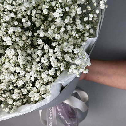Стильный, пышный и нереально воздушный букет из белоснежной гипсофилы - актуальный и трендовый подарок для любимой, для мамы, для коллеги.