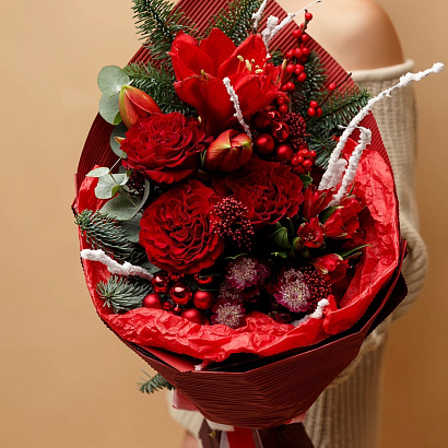 Хотите сделать необычный зимний презент? Зимний букет с еловыми веточками нобилиса станет приятным подарком на день рождения, юбилей или ярким признанием в чувствах.