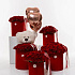 Огромная бархатная подарочная коробка (размер XXL) с 75 алыми розами, плюшевым мишкой (высотой 150 см) и фольгированными шарами.