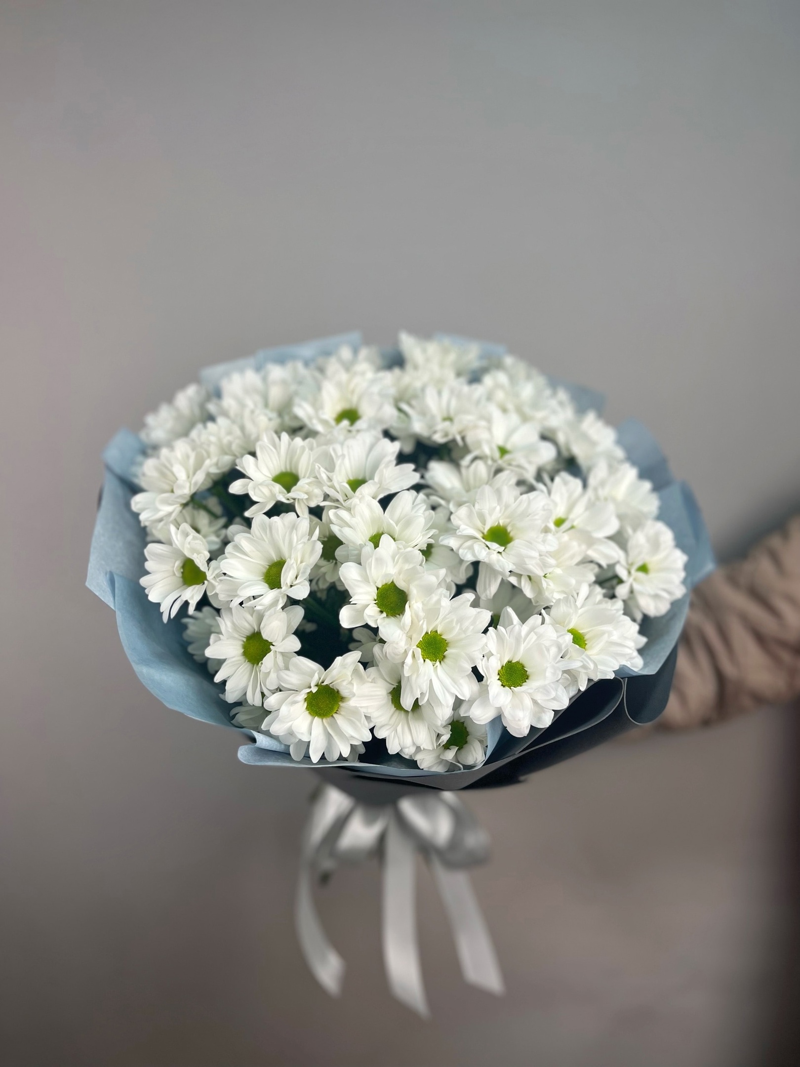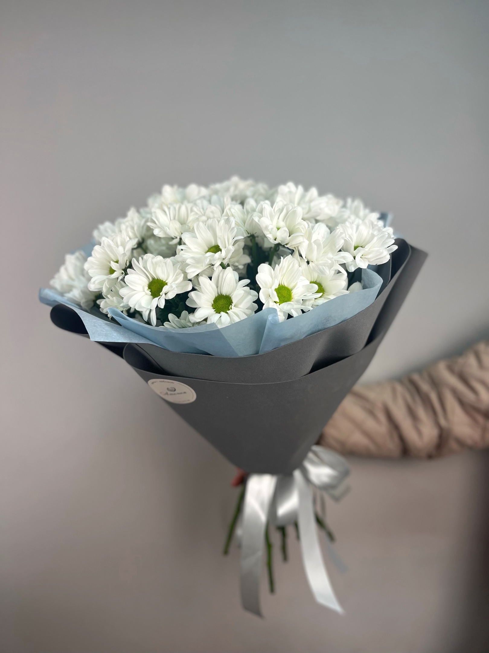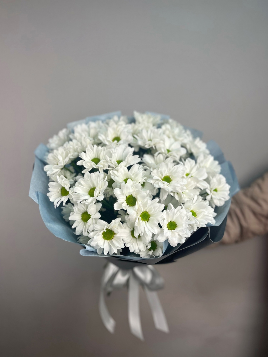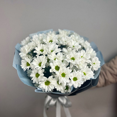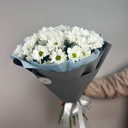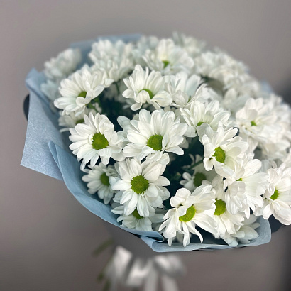 Нежный букет из 9 белых хризантем. Дарите цветы, радуйте близких, а мы их доставим в Великом Новгороде.