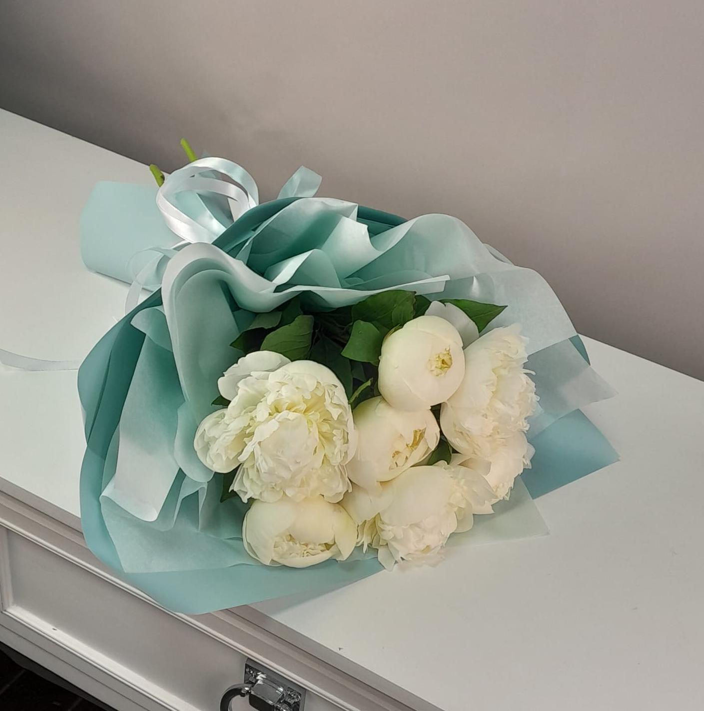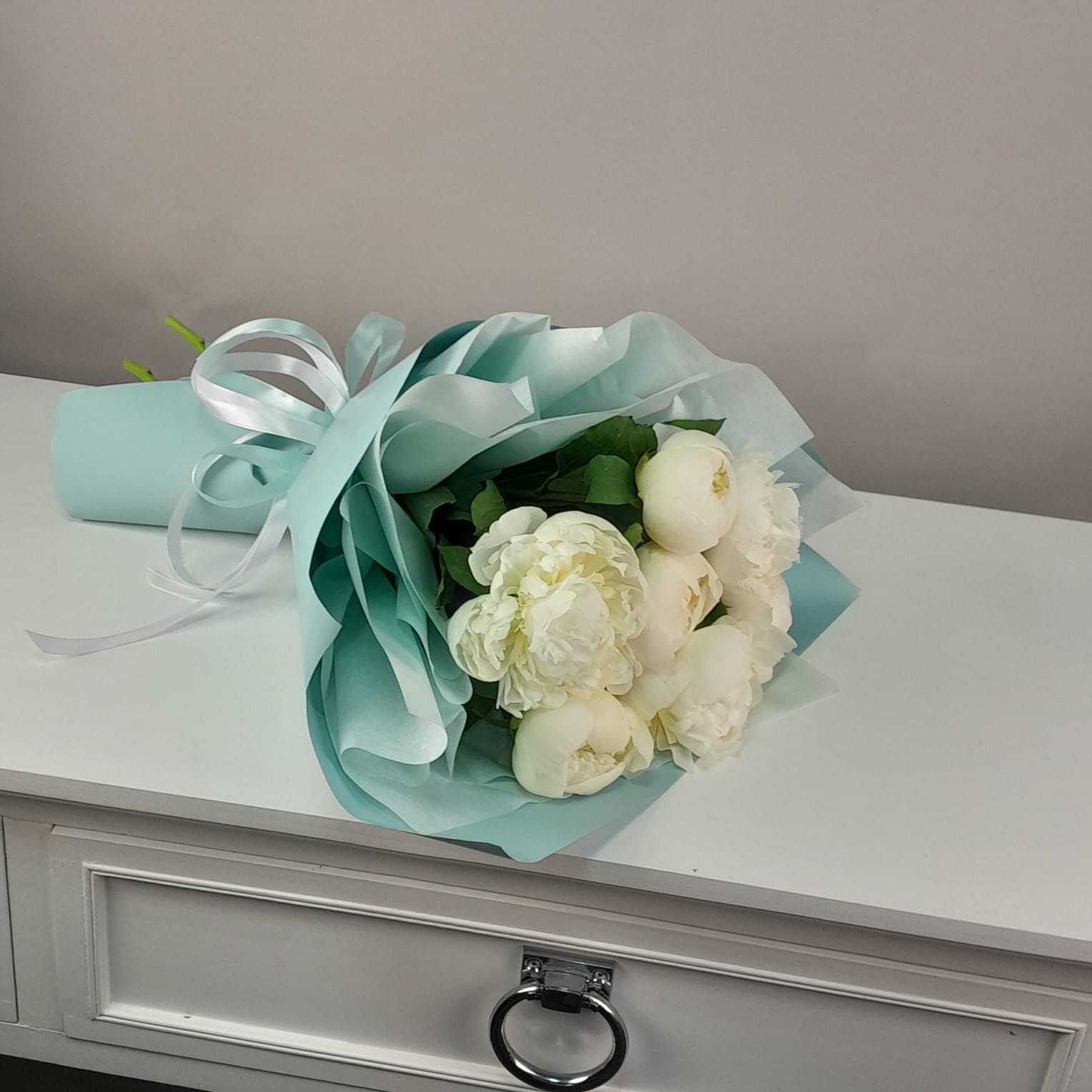 Обворожительный букет из 7 нежнейших белых пионов сорта Дюшес Немо для летнего настроения.
