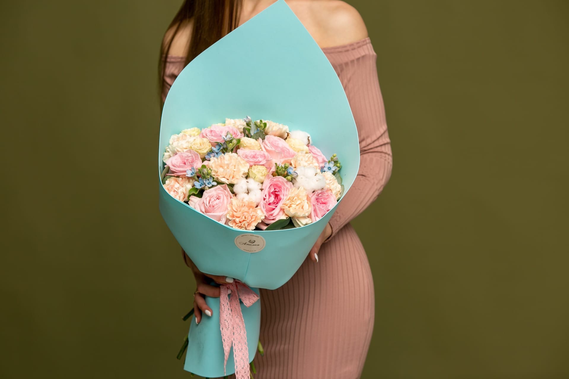Букет цветов с воздушными бутонами хлопка, собранный с любовью флористами Амелии, украсит любое торжество и праздник! Или станет неожиданным сюрпризом, который поднимет настроение получателя.