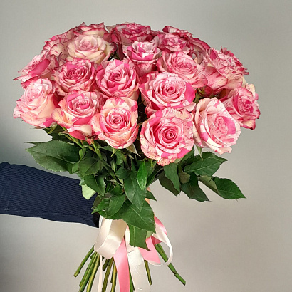 Розы - идеальный презент на любое торжество: день рождения, свадьба, юбилей. А может быть просто знак внимания или даже признание в любви. Букет из нежных розовых роз 60 см. Всегда свежие цветы в салонах Амелия.